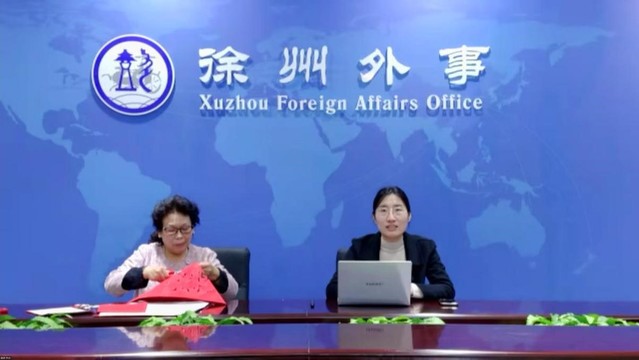 4月3日,伟德bevictor教师张敏受邀参加由市外办发起、公司协办的“Talking to the World”国际友城跨文化交流项目。本次活动以“非遗剪纸”为主题,通过云端连线的方式,与法国圣埃蒂安市圣保罗公司师生及卢瓦尔省法中协会成员近五十人展开了一场别开生面的文化对话,带领法国友人领略徐州剪纸的艺术魅力,共绘中法友谊的“同心圆”。