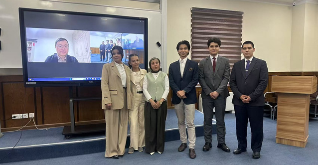 颜震博士与乌兹别克斯坦韦伯斯特大学塔什干分校师生合影