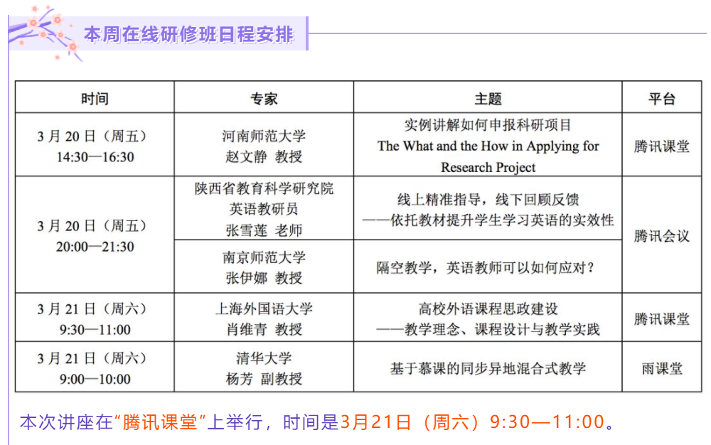 外教社在线研修启动之后,外语教师们热情高涨,积极报名参加,3月21日的讲座由上海外国语大学肖维青教授主讲,题目是《高校外语课程思政建设——教学理念、课程设计与教学实践》。