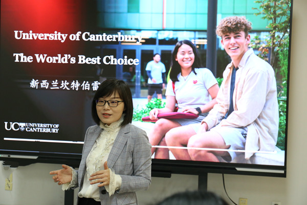 首先,刘端主任介绍了坎特伯雷大学的办学历史、院系及专业设置、硬件设施等情况。针对国际合作交流项目的具体问题,为同学们详细介绍了坎特伯雷大学的留学申请流程、语言要求、备选课程、所需费用等。张秀萍经理表示,希望以此次交流为契机,进一步推进两校的交流与合作。