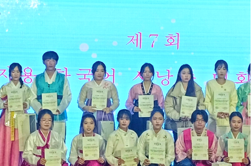 2023年11月18日,“2023年中国(杭州)郑芝溶文化节二十五届韩国语写作暨第七届诗朗诵比赛”圆满落下帷幕。公司朝鲜语专业20级路文晶同学荣获韩国语写作二等奖,22级张丽娜(个人)及王易、穆思妤(组合)分别获得诗歌朗诵二等奖和优秀奖,朴春燮老师荣获写作及朗诵两项优秀指导教师奖。
